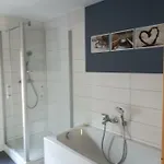 Ferienhof"Waldesel Rippersroda" biedt een terras en een zitruimte die zijn ingericht met een bank, samen met moderne voorzieningen zoals een flatscreen TV met satellietzenders. De veiligheidsvoorzieningen op de kamer bestaan uit rookmelders. Dit appartement heeft een apart toilet, een badkuip en een douche voor uw comfort. Je vindt er ook een haardroger en handdoeken.